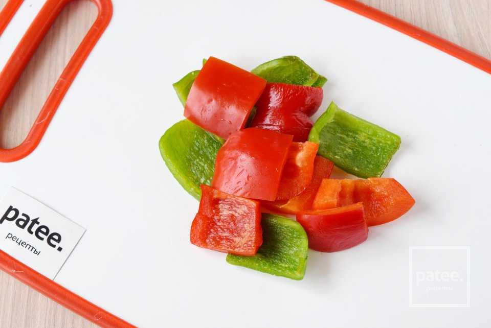 - Подсаливаем, но только если бекон слабосоленый или совсем не содержит соли. Обязательно приправляем перцем и приступаем к нанизыванию.