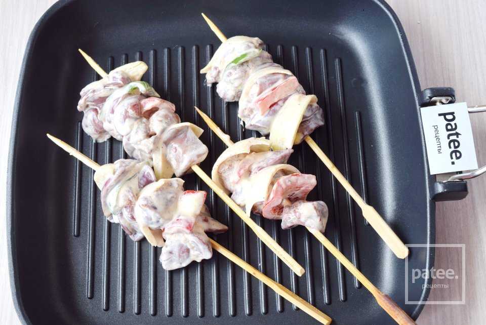 Рецепт «Шашлычки на сковороде из куриной печени»: