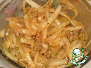 Порезанную печень положить в луковый маринад и оставить на 2-3 часа.