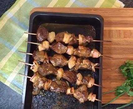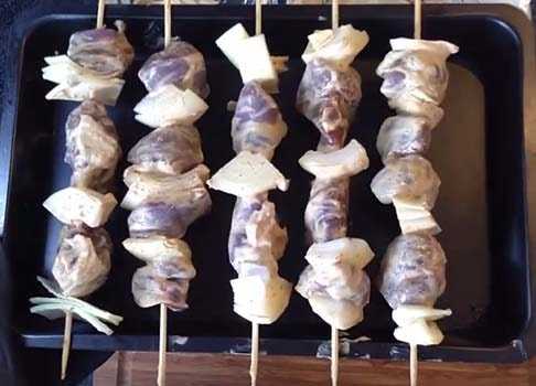 Шашлык из печени курицы в духовке на шпажках