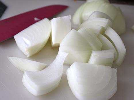 Лук крупно нарезать кольцами.
