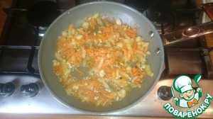 На сковородку добавляем немного растительного масла и обжариваем лук и морковь.
