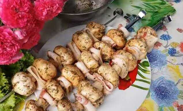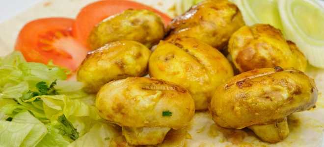 Классический рецепт шашлыка из шампиньонов (без майонеза)
