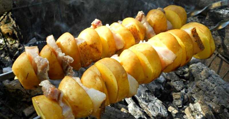 Любителей сытной еды обязательно заинтересует рецепт, в котором сочетаются лёгкость грибов и питательность сала. Такой шашлык уже не назовешь диетическим, зато звание «самая аппетитная еда, приготовленная на костре», у него не отнять.