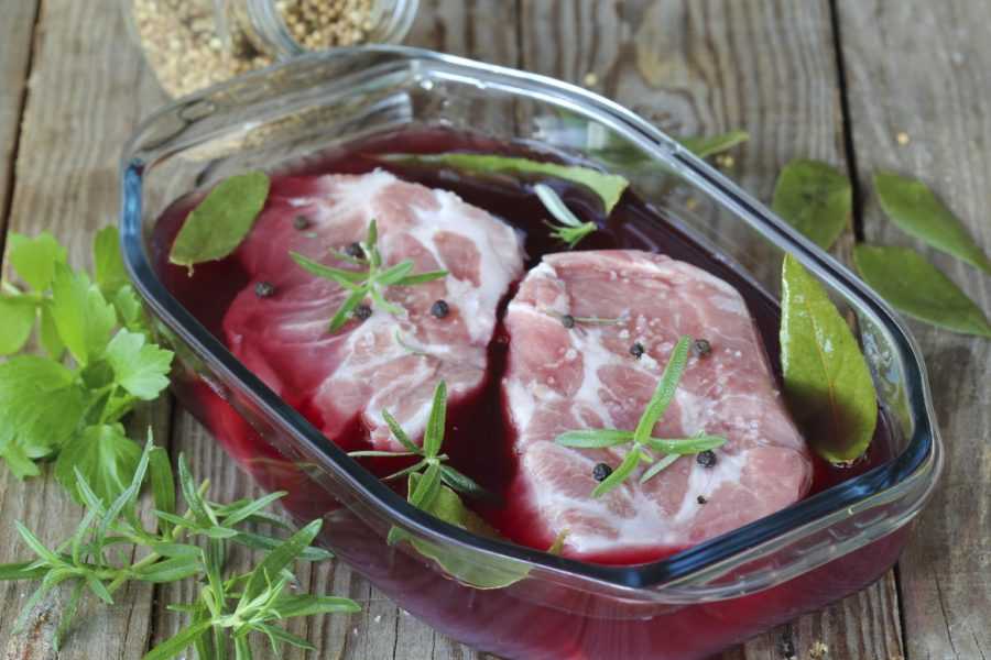 Уксус – главный компонент маринада. Можно брать уксусную эссенцию, уксус девяти- или шестипроцентный столовый, а также любые вкусовые вариации: яблочный, бальзамический, винный. Обычно берется 40 мл столового уксуса 9% на каждый килограмм свинины. Заменой уксусу может быть молодое вино, только кислое, без сахара. Время маринования варьируется по желанию от нескольких часов до суток.