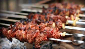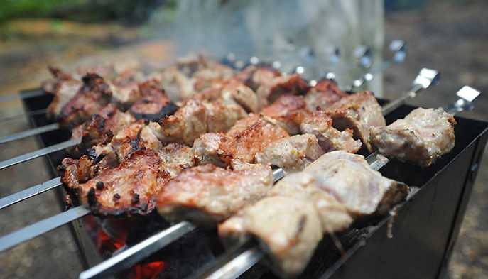 * Правильно размещайте шашлык на мангале. «Если хотите сделать много порций этого блюда, оборудуйте на мангале 2 зоны — одну для жарки, вторую для того, чтобы шашлык мог «дойти», но при этом не остыть», — добавляет Алексей Дыма.