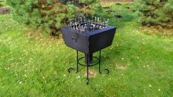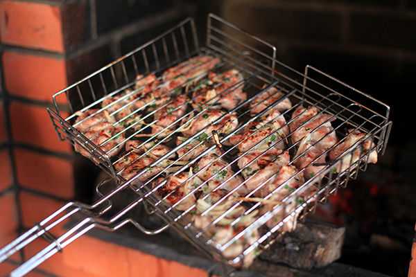 Если вместо классического шашлыка вы решите приготовить барбекю, то потребуется специальная решетка для жарки. Это деталь из нержавеющей стали либо из чугуна, но последний вариант используется реже. Решетка разъемная, состоит из двух деталей, которые скрепляются друг с другом. Это необходимо, для того чтобы можно было переворачивать и поджаривать мясо со всех сторон.