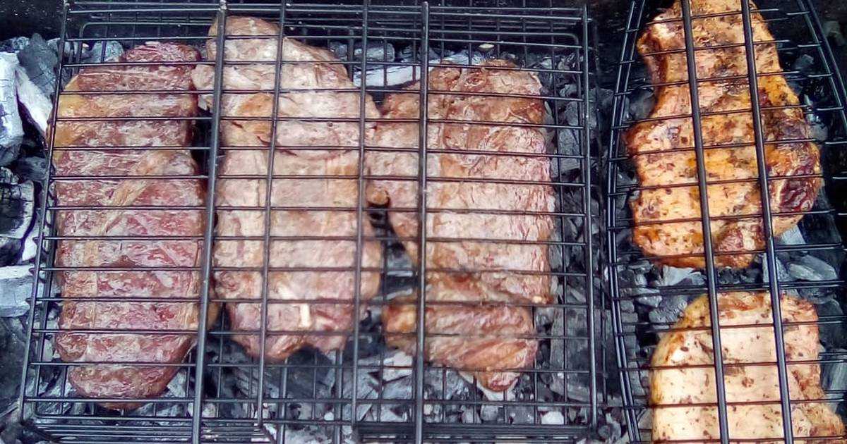 Теперь черед мангала. Нам нужны хорошо раскаленные угли – как для шашлыков. Как правило, за этот процесс берутся мужчины: костер – их забота. Выкладываем стейки на решетку и отправляем на мангал.