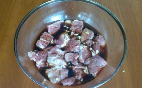 - Затем настоявшейся жидкой частью маринада заливается мясо и все отправляется мариноваться.