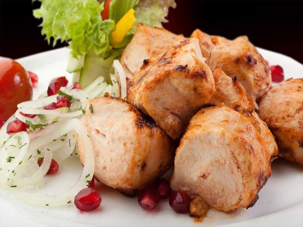 Еще один диетический шашлык из куриной грудки готовится при участии: 1 кг филе, 50 мл соевого соуса, специи по вкусу, немного овощей, натуральный йогурт 300 мл.