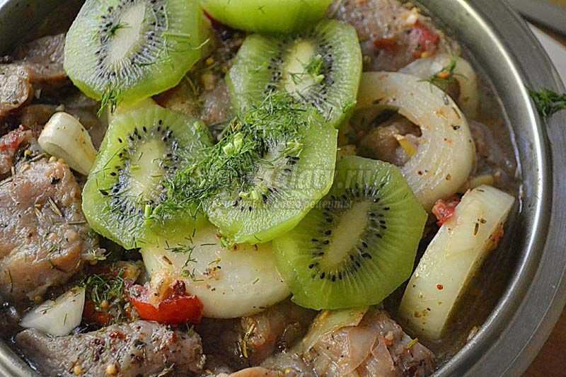 добавлять киви за 2-3 часа до того времени как вы начнёте запекать шашлык, не