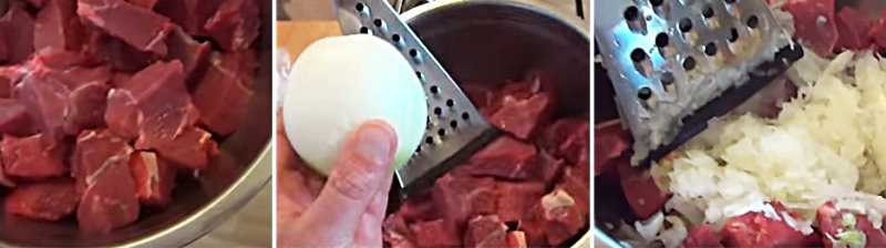 добавлять много. Измельчённый лук в кашицу будет лучше впитываться в мясо, а
