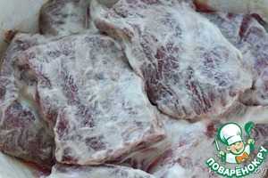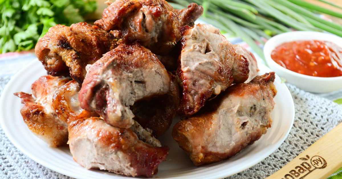 - Из мяса лучше всего выбрать свинину или говядину. Промаринованные кусочки получатся мягкими, слегка хрустящими.