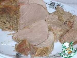 После окончания программы дать мясу постоять минут 10 в мультиварке, затем достать и подавать к столу как в горячем виде с соусом и гарниром, или в холодном для бутербродов.