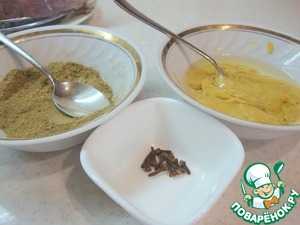 (кориандр, базилик, орегано, майоран, муск.орех, смесь перцев. Каждая по 1 ч.л. гвоздика — 3-4 шт.)