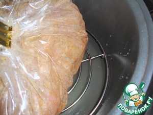 В чашу мультиварки положить подставку решетчатую для горячего. Налить 3 мультистакана воды.