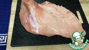 Филе из курицы нужно разморозить и промыть в холодной воде.