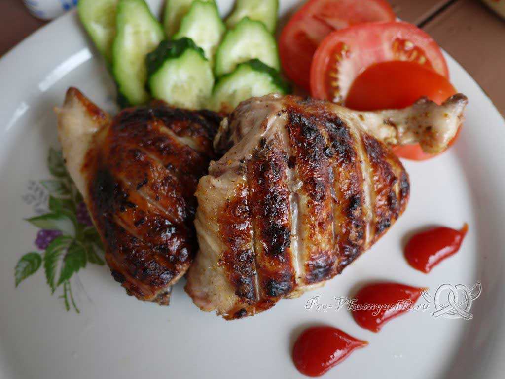 Данный продукт легок в приготовлении — Вам даже не потребуется нарезать мясо на порционные кусочки, разумеется, если все приобретено в магазине в разделанном виде. Курица маринуется немного сложнее, чем свинина, но данная проблема легко решается в приведенном ниже рецепте. Если Вы будете следовать всем инструкциям, то в итоге получите отличное вкусное блюдо.