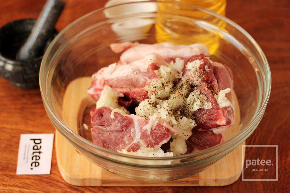 Как зажарить шашлык на сковороде из свинины (пошаговый рецепт с фото):