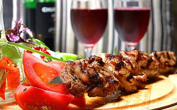 Так как шашлык – сытная закуска, уместно, если вино будет крепким. И, естественно, вино, поданное к такому шашлыку, должно быть красным.