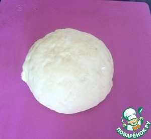Выливаем горячую смесь в муку и вымешиваем тесто. Сначала лопаткой, потом руками. Оно очень приятное, не липкое.