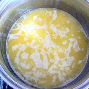 Масло растопим, смешаем его с водой и доведем до кипения.
