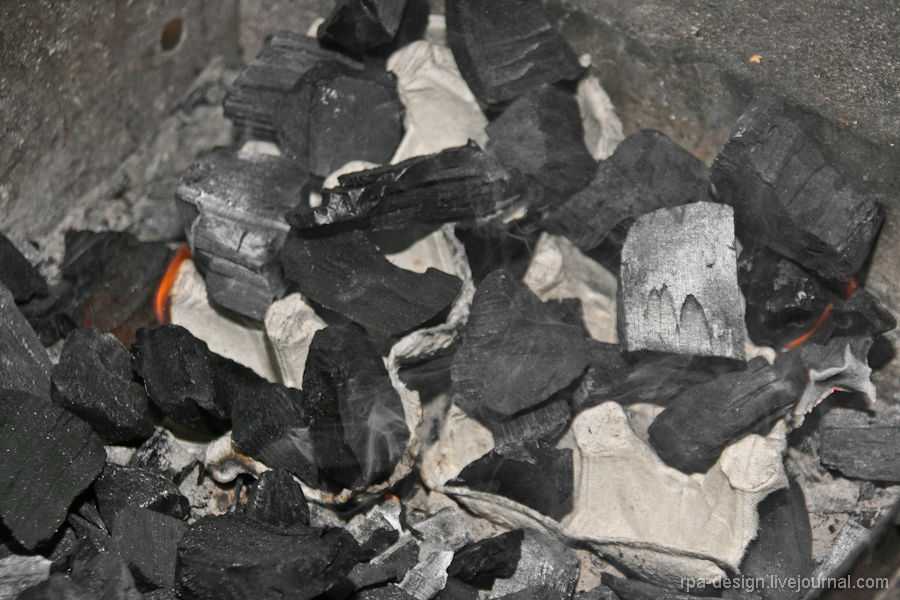 6. Но, перед этим кончено же нужно подготовить угли до нужной температуры. Они должны быть прогоревшими и светиться, сверху должен быть пепел.