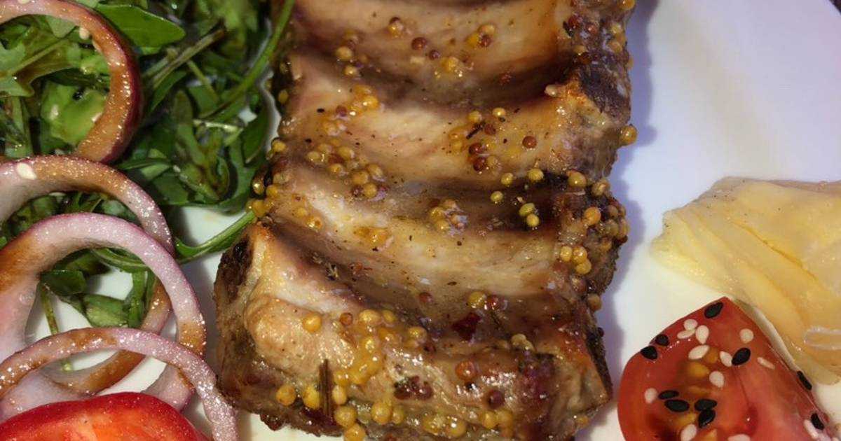 Маринад из горчицы также подойдет для стейков и антрекотов из свинины, готовое мясо будет таким же сочным и вкусным.