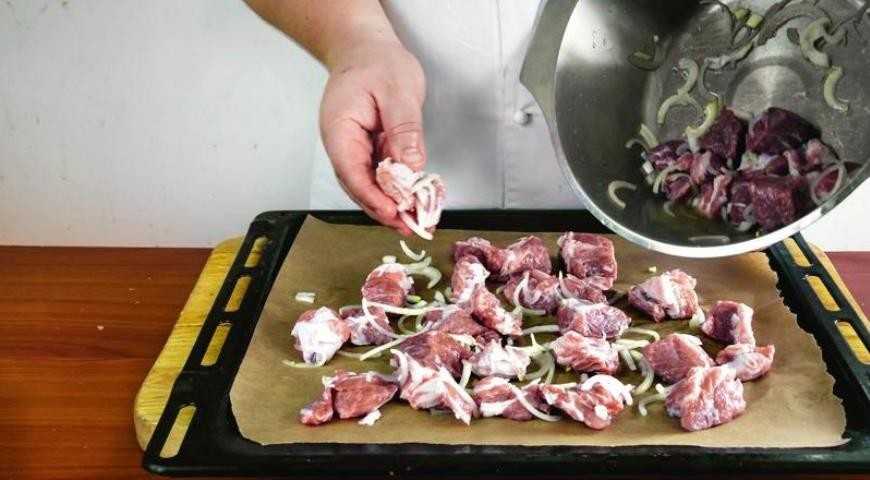 Кушать, пока мясо не остыло. шашлык в духовке из свинины в рукаве на луковой подушке