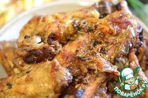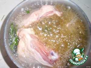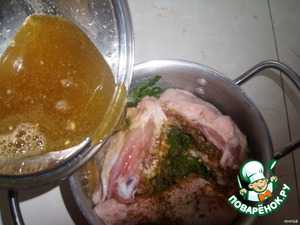 Затем воду с лимоном льем в окорочка. Происходит бурная реакция. Такое впечатление, что заливается кипяток.