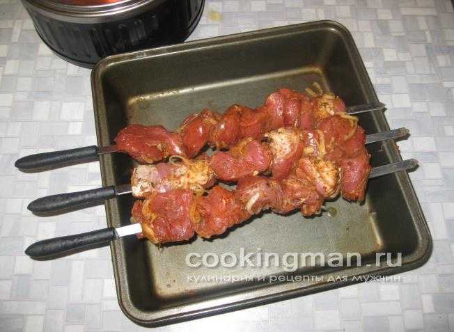 Или, предварительно сняв мясо со шпажек. Вот, собственно, и весь рецепт! Вкусно и быстро! Всем приятного аппетита, и удачи в приготовлении в электрошашлычнице вашего шашлыка по описанному выше рецепту.
