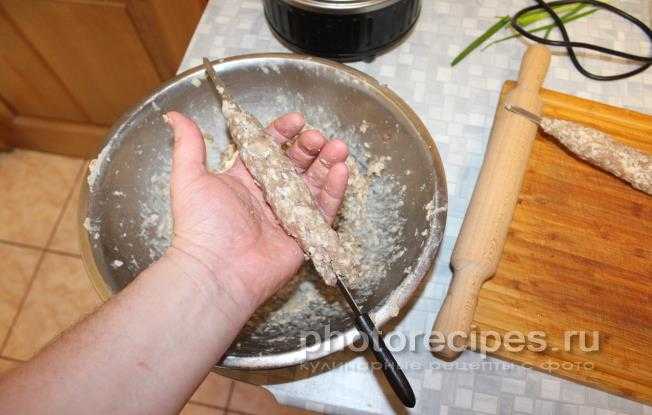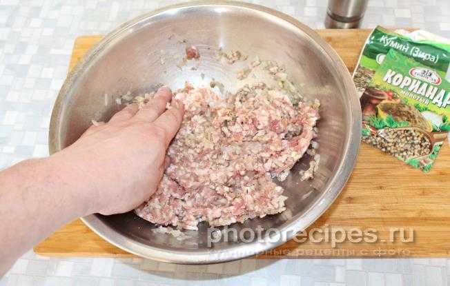 И хорошенько, не менее 7-10 минут, тщательно вымесим фарш из баранины на люля-кебаб руками, периодически не забывая его отбивать об стол или дно тазика. Именно от того как Вы вымесите баранину, и будет зависеть получатся ли у нас люля в электрошашлычнице, или нам придется их доделывать в духовке!