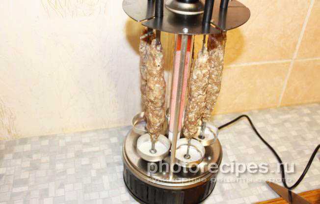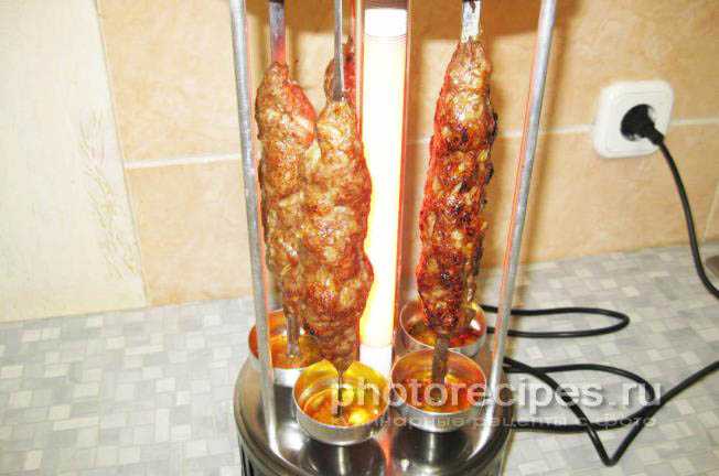Теперь нам осталось закрыть электрошашлычницу кожухом, и запекать там люля-кебабы около 10-12 минут.