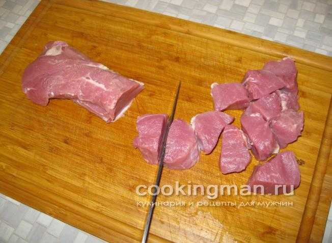 Приготовление аппетитного свиного шашлыка начинается с подготовки мяса – вырезку следует промыть под проточной водой, обсушить бумажным полотенцем и нарезать небольшими брусочками, размер которых не превышает 4-5 см.
