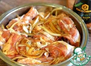 Итак, пару слов почему свиная вырезка как никакая другая часть подходит для того, чтоб запечь ее в электрошашлычнице. Все просто — вырезка очень нежное мясо, ее достаточно посолить, поперчить и без какого либо маринования — запекать. Но отдавая дань шашлычным традициям, немного заморочимся и слегка промаринуем мясо.