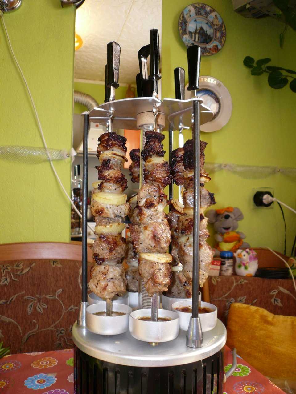 Большинство моделей от отечественных производителей в основном с вертикальной «загрузкой». Их мощность варьируется от 700 до 2000 Вт. Также они различаются количеством одновременно устанавливаемых шампуров, габаритными размерами, наличием или отсутствием автоматики и таймера. Можно приобрести и устройство с корпусом, изготовленным из керамики. Лучше выбирать электрическую шашлычницу со съемными элементами. Ее намного легче отмывать. В общем, ассортимент данного вида устройств достаточно обширен. Можно выбрать достаточно неплохую модель по приемлемой цене. Как выбрать электрошашлычницу для дома, в конечном итоге, решать вам.