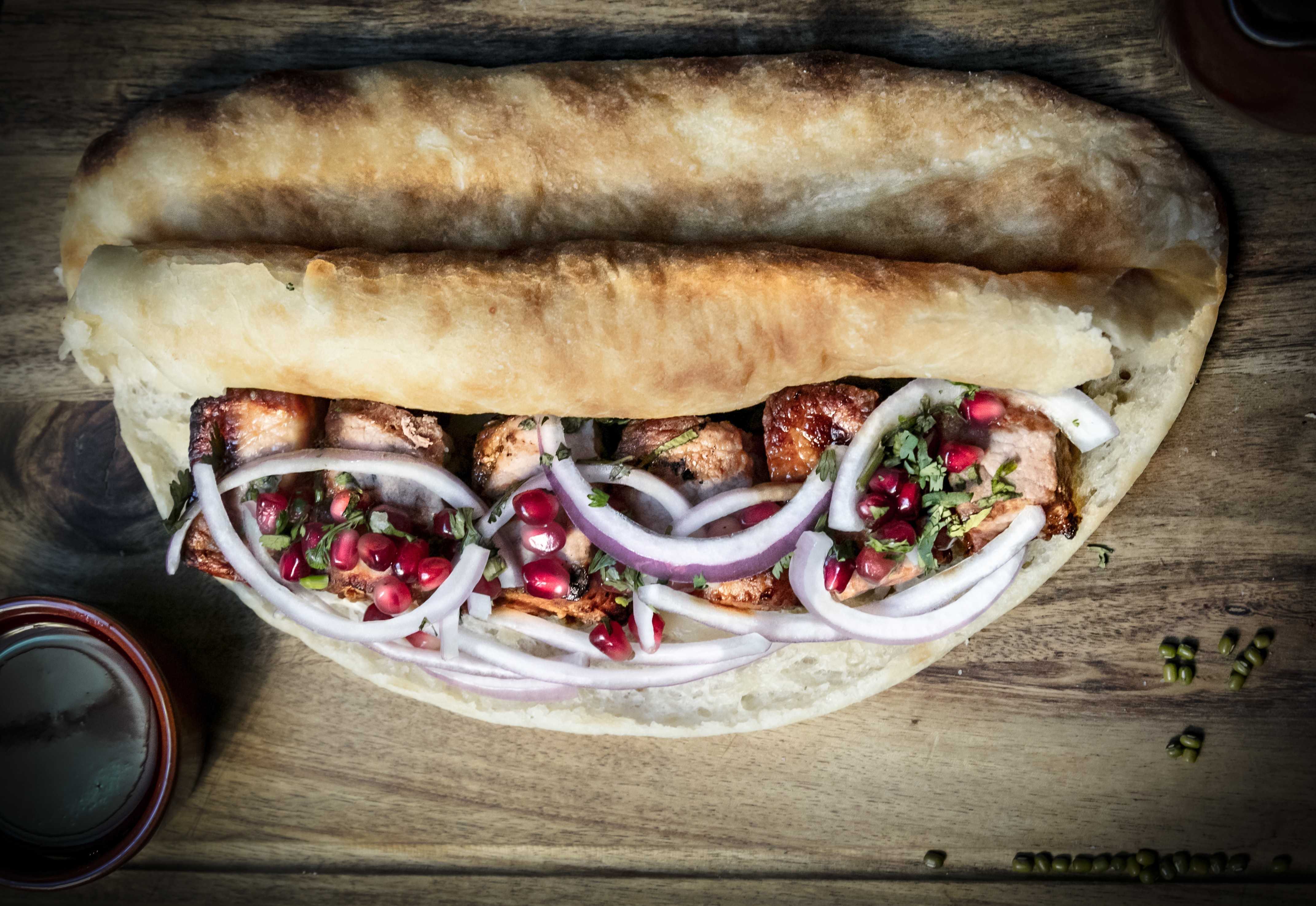 Еще горячий шашлык выкладываем с помощью деревянной лопатки на специальную плоскую тарелку и украшаем измельченной зеленью и зернами граната. Подаем к обеденному столу вместе с ломтиками хлеба или лавашем, а также свежими овощами и всевозможными соусами на ваш вкус.Приятного вам аппетита!