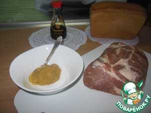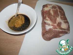 Подготовим маринад. Нужно смешать горчицу, соевый соус и хмели-сунели.