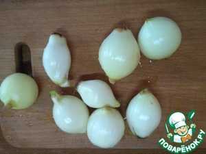 Маленькие луковицы очищаем НЕ СРЕЗАЯ «хвостики» и «попки». Это необходимо для того, чтобы в последствии он не распался на «запчасти»)