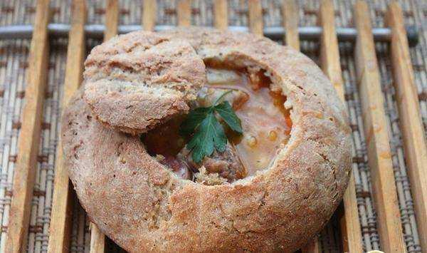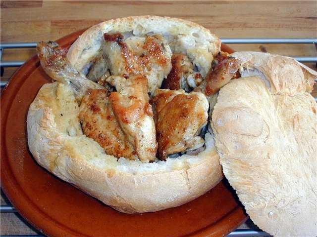 Но порезать этот хлеб оказалось не так то и легко!!! Стенки хорошо зарумянились, такие — аппетитно хрустящие, ну а низ, видимо от сока мяса был влажноватым… А мне так хотелось, чтобы мясо было в хлебной оболочке… Но вкус самого мяса, сразил наповал, просто нежнейшее и сочное…