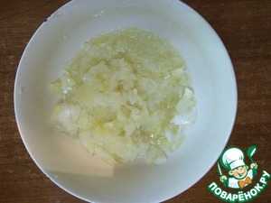 По истечении отведенного времени выкладываем в емкость полукольца лука. Тщательно все перемешав деревянной лопаткой, обжариваем ингредиенты еще 5–7 минут до прозрачности последнего.