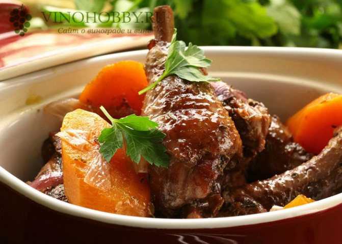 - Финальная подготовительная стадия – перемешанная смесь тщательно проливается основным количество оставшегося вина, и мясо отправляется мариноваться в холодильник. Минимальное время процесса маринования составляет около семи часов.