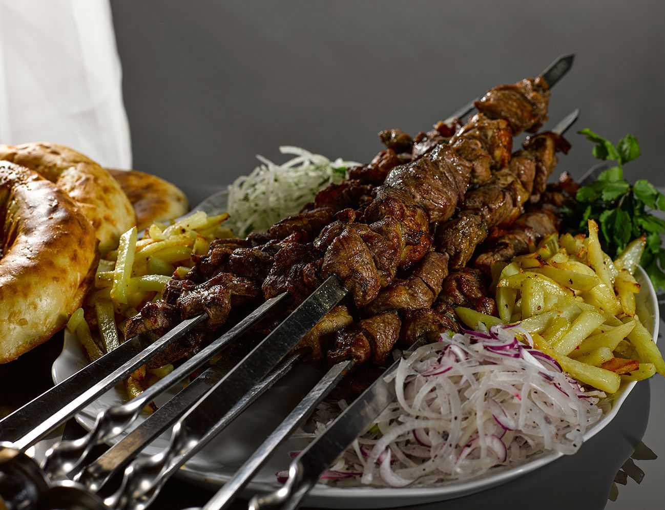 Дополнить вкус мяса можно любыми специями, которые вам нравятся больше всего. Если захотите прибавить свежую петрушку, укроп, базилик или барбарис, то не измельчайте его, так как на углях мелкие кусочки превратятся в угольную крошку. Перед обжариванием зелёные веточки убираются с мяса.