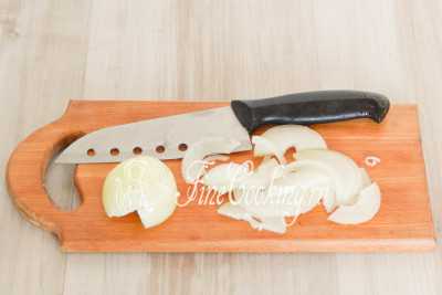 Лук очистить и нарезать так как вам по душе — кольцами, полукольцами или кубиками.