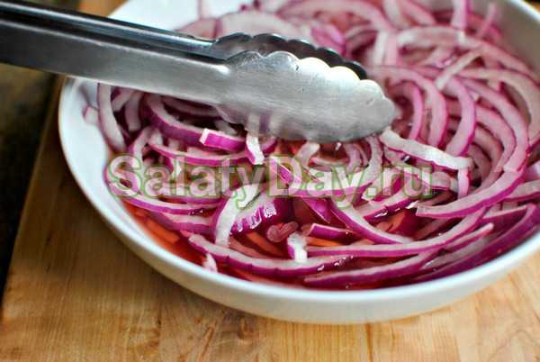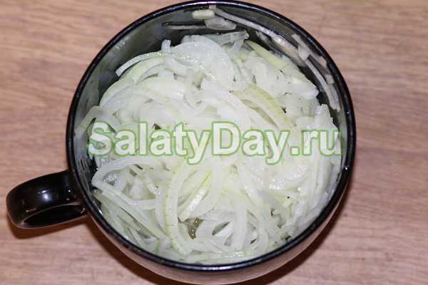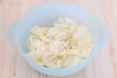 - Лук нашинковать колечками, не мельчить.