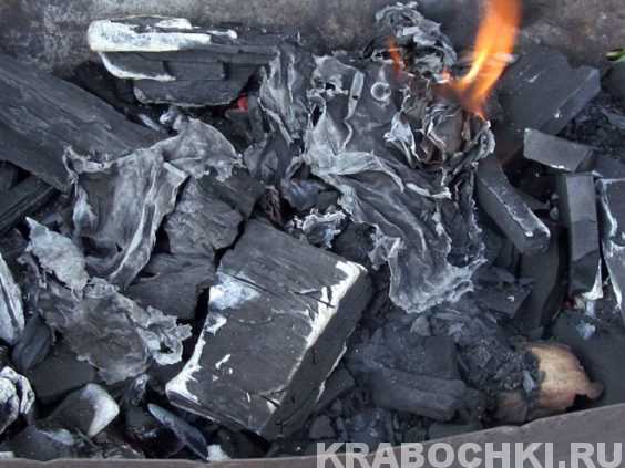 Вы уже отлично знаете, что угли предварительно разжигаем.