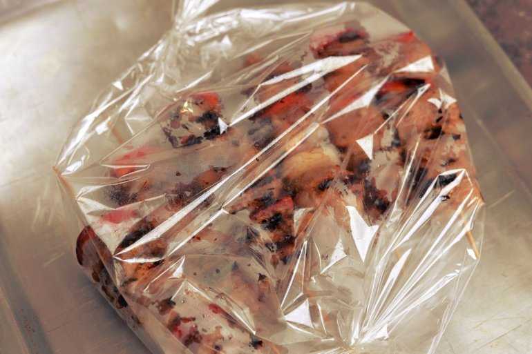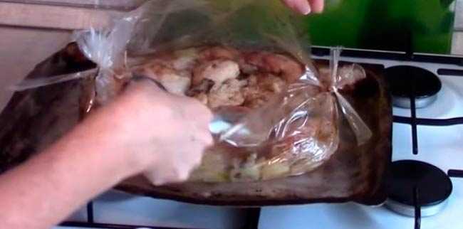 - перемешивать содержимое рукава в процессе запекания не нужно, иначе шашлык получится сухой и подгорит;