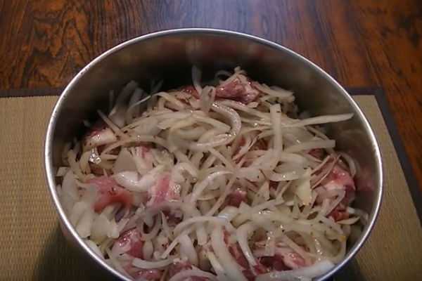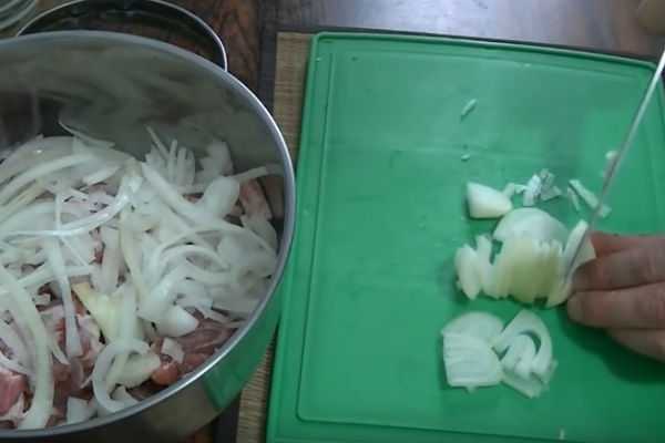 - на 1 килограмм мяса берется 4-5 крупных луковиц;