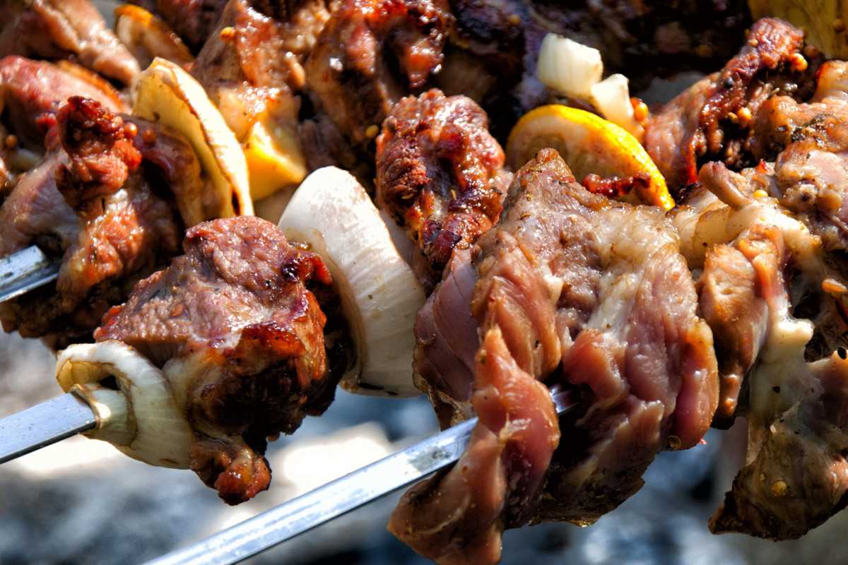 - Во время жарки шашлык можно поливать вином, разбавленным с водой, но не переборщите, иначе мясо получится жестким.