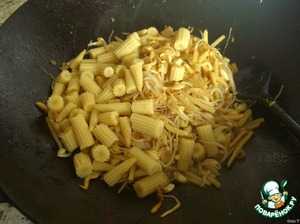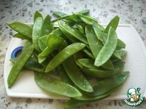 Так же совсем немного обжарить зеленые стручки гороха, добавить.